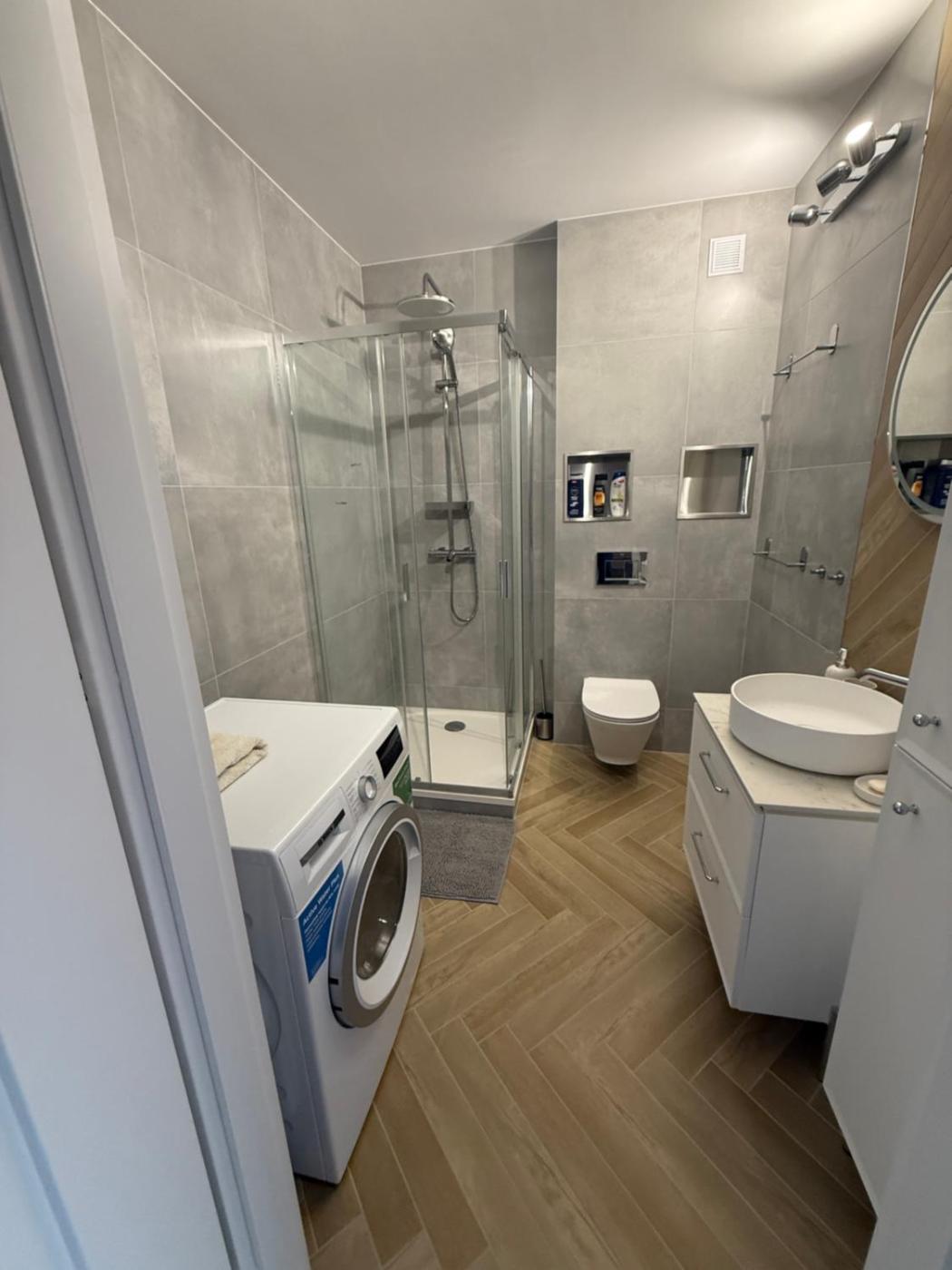 Apartament z 1 sypialnią. This apartment features 1 living room, 1 separate bedroom and 1 bathroom with a shower and slippers. In the well-equipped kitchen, guests will find a stovetop, a refrigerator, a dishwasher and kitchenware. The apartment features a flat-screen TV with streaming services, a washing machine, soundproof walls, a tea and coffee maker as well as ancourtyard view. The unit has 2 beds. Apartament - 4 osobowy. Powierzchnia pokoju ok.: 42 mkw.
